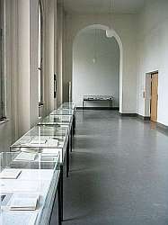 Ausstellung der Ludwig-Maximilian-Universität München Text und Fotos: Helmut Walther, Ende August 2004 Als Webmaster dieser Seite habe ich die von der SZ beschriebene Ausstellung Ende August besucht und möchte Ihnen hier auch einen kleinen optischen Eindruck geben; anders als angekündigt ist sie nicht vom Hauptgebäude der LMU her zugänglich, wo sich zur Zeit auch keinerlei Hinweis darauf findet, sondern nur vom Gebäude der Universitätsbibliothek her im ersten Stock derselben. Nach halbstündiger Suche und mancherlei Fragen gelangte ich schließlich durch einen Seitengang an das Ziel meiner Wünsche.
